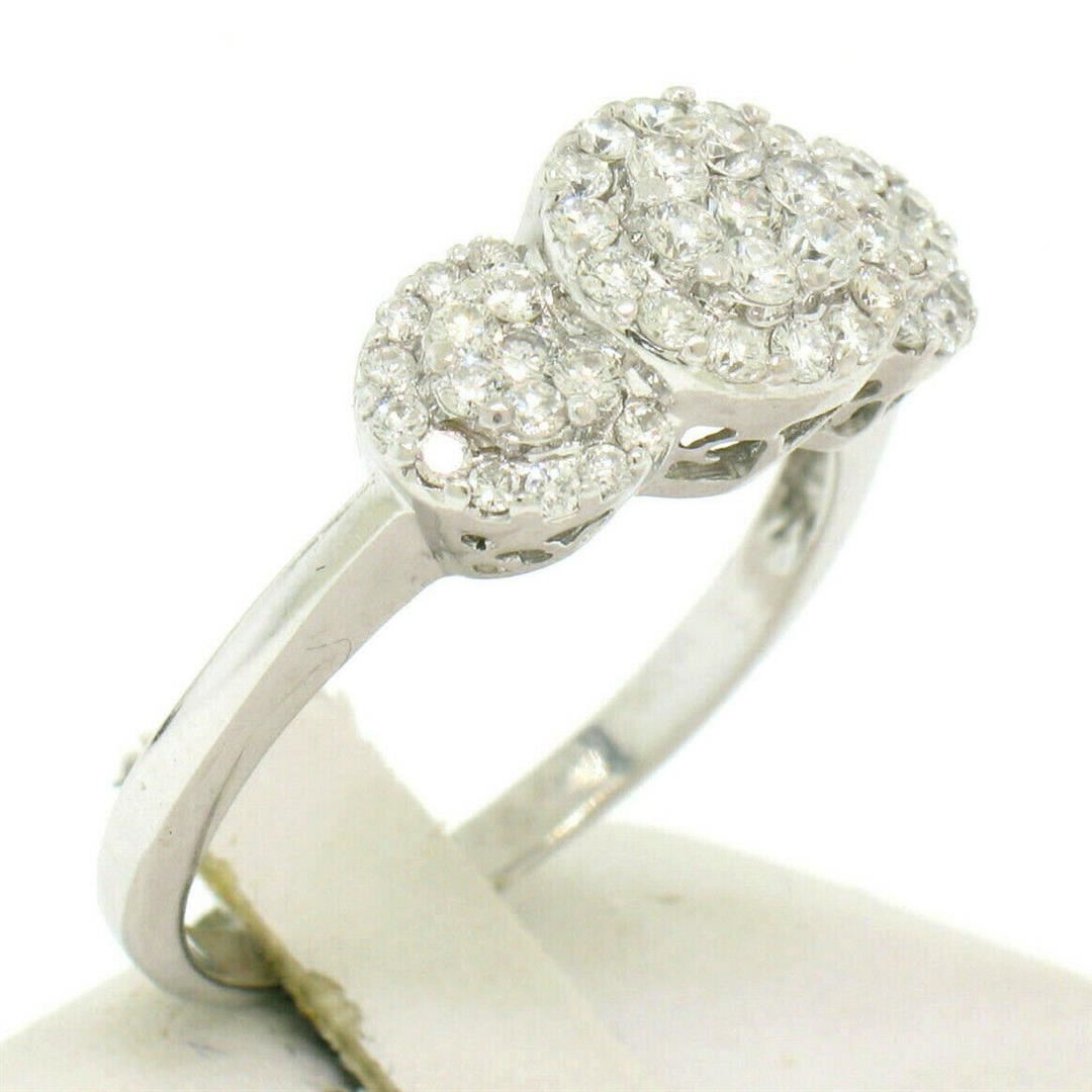 An estate solid 14k white gold band ring, with 52 round brilliant cut natural diamonds (F - VS2; 1.25ctw). The ring is size 9.0, weighs a total of 4.10 grams, and measures 8.72mm wide.