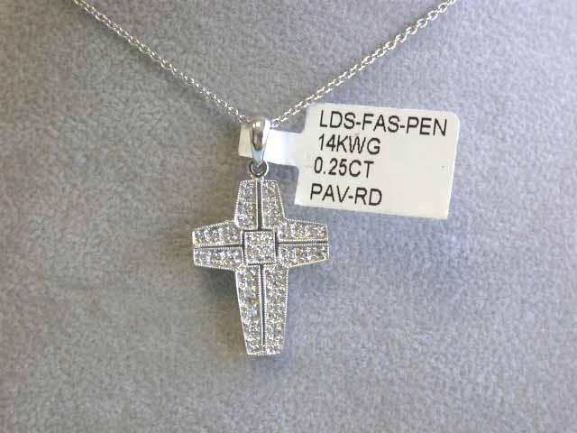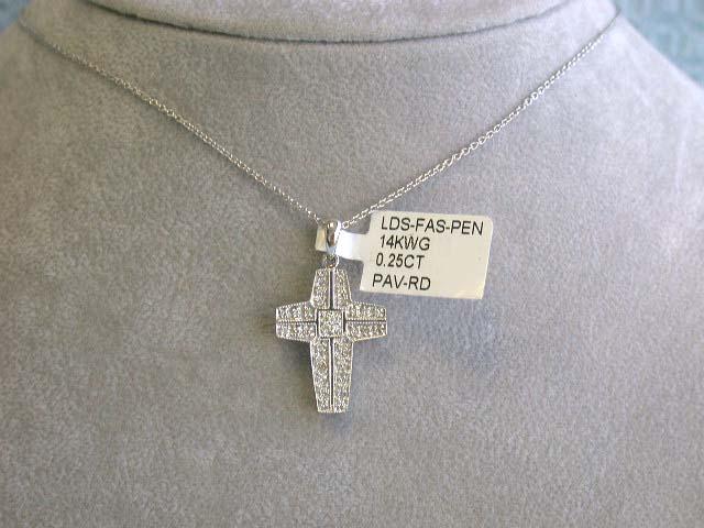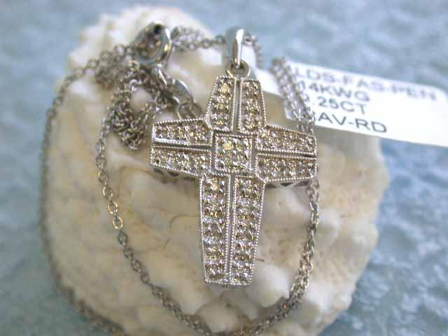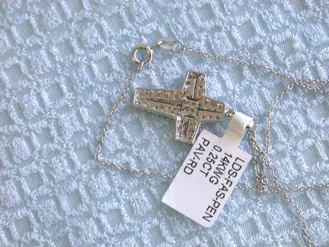 14k White Gold Necklace with Cross Pendant. Diamonds - 0.25 carat, G color and VS clarity. Pendant - approximately 1 inch X 1/2 inch.