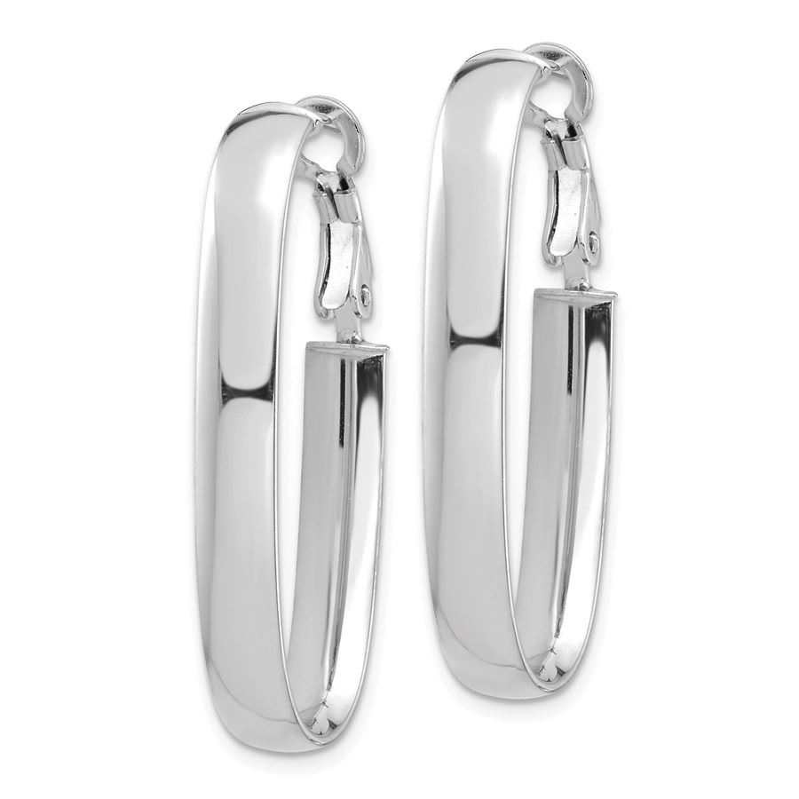 14k White Gold Omega Back Oval Hoop Earrings - 5x16 mm