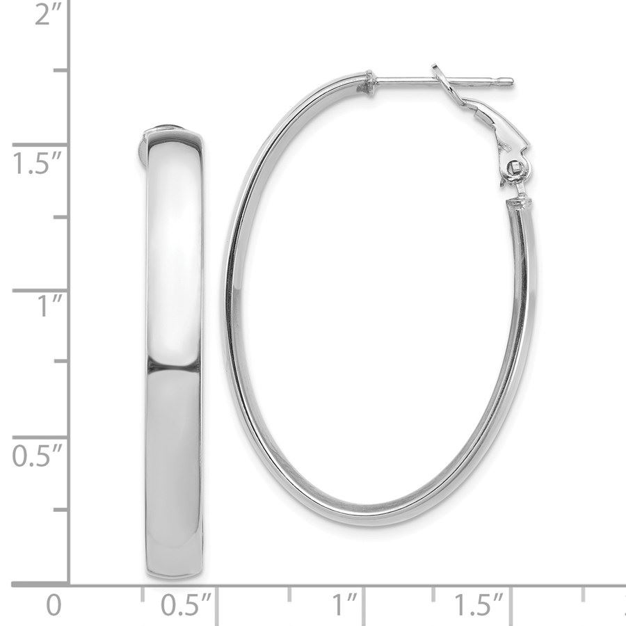 14k White Gold Omega Back Oval Hoop Earrings - 5x26 mm