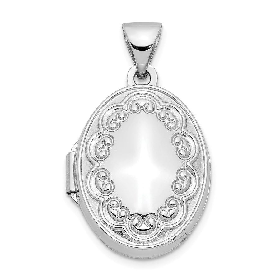 14k White Gold Oval Embossed Border Locket - 25 mm