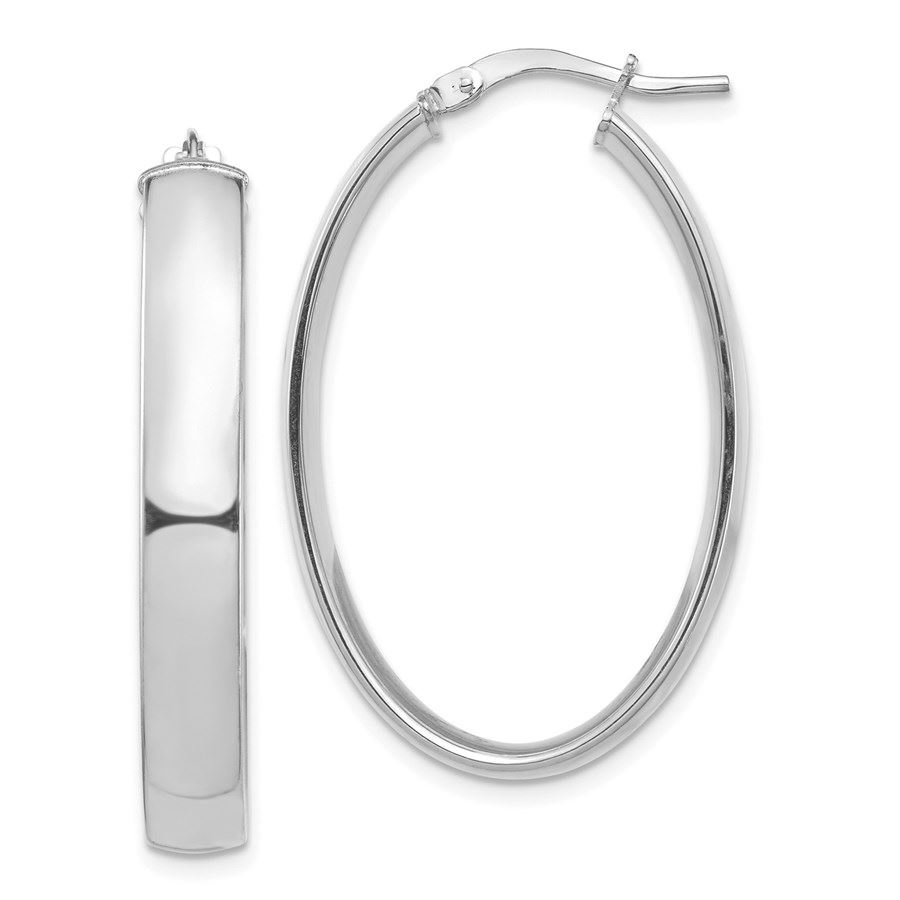 14k White Gold Oval Hoop Earrings - 5x22 mm