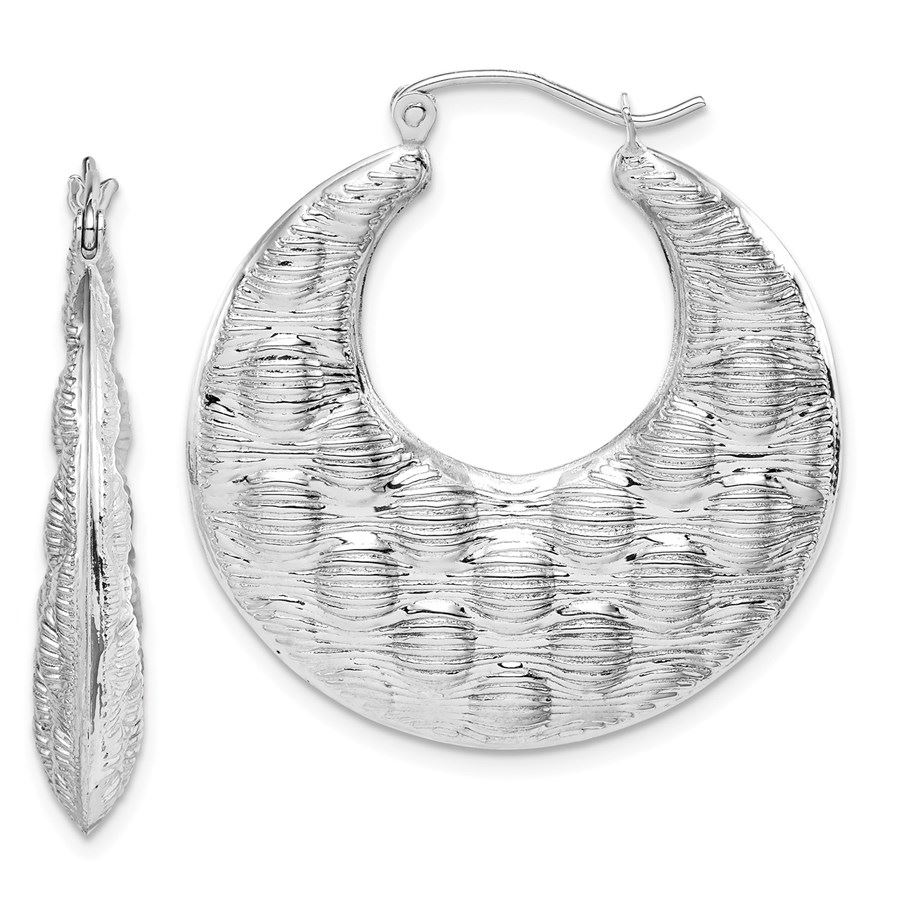 14k White Gold Polished Crescent Textured Hoop Earrings - 55 mm