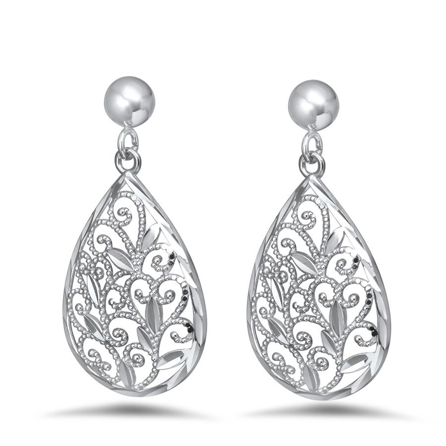 14k White Gold Polished Filigree Teardrop Post Dangle Earrings