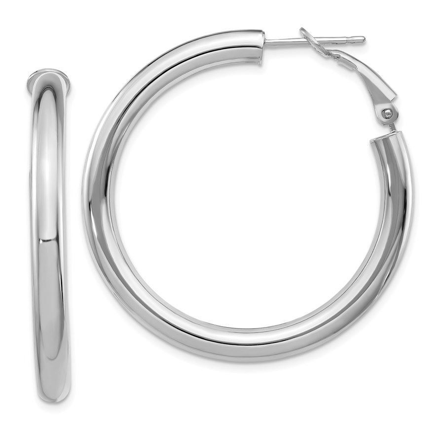 14k White Gold Polished Round Hoop Earrings - 30 mm