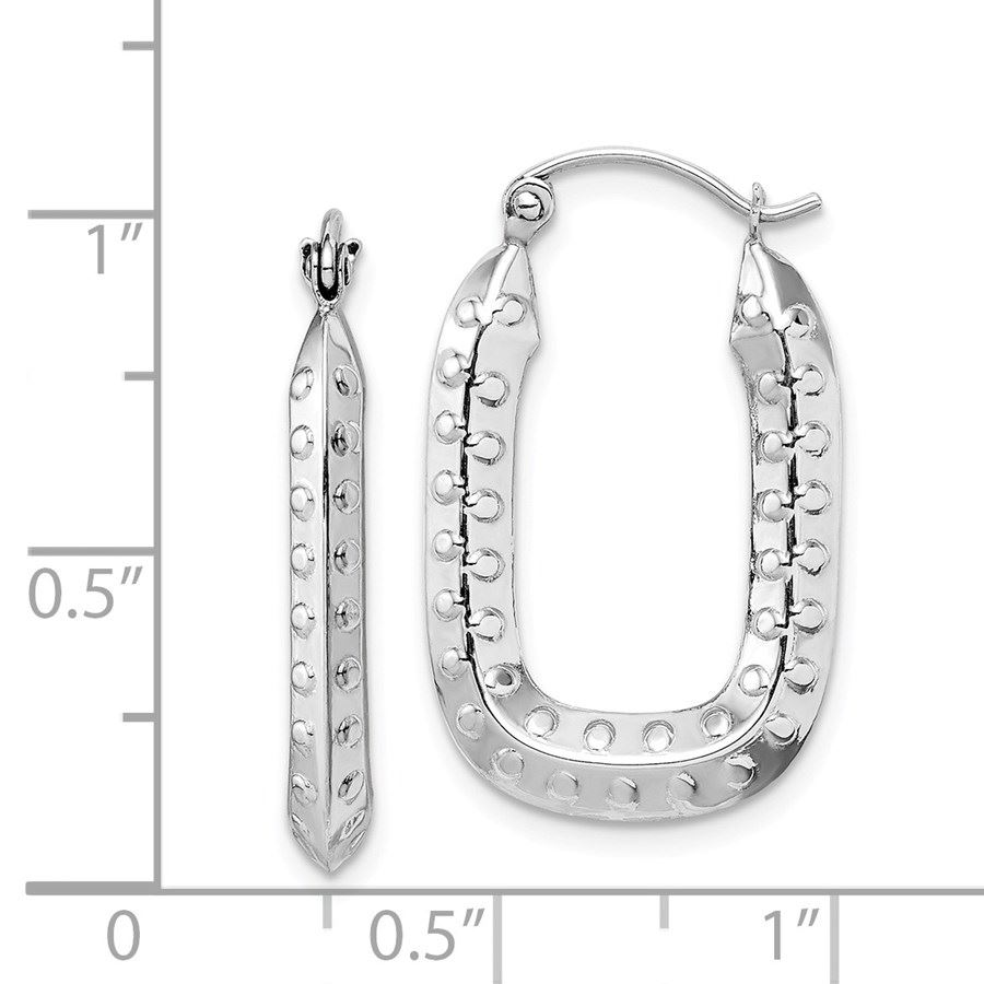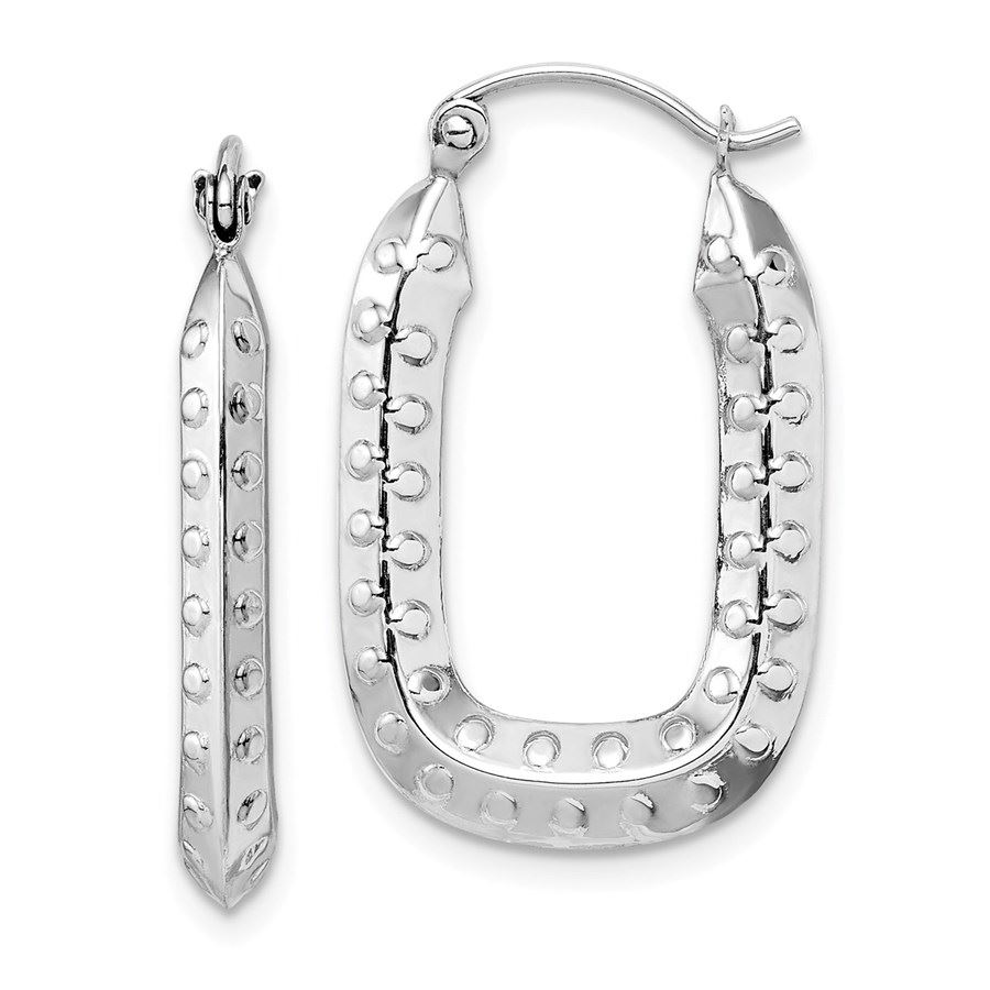 14k White Gold Polished Textured Rectangle Hoop Earrings