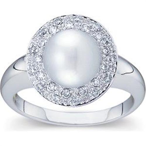 This 14k White Gold Ring features a Stunning Freshwater CULTURED PEARL surrounded by 26 SPARKLING DIAMONDS. The Diamond Total Weight = .26 CARATS! This beautiful Pearl and Diamond Ring is a Size 6 and it can be resized either larger or smaller.