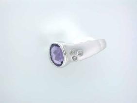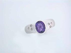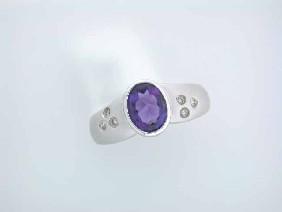 14k White Gold Ring with Diamonds - 0.07 carat and Amethyst - 1.25 carats. The ring size is 6 and weighs 3.70 grams