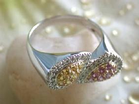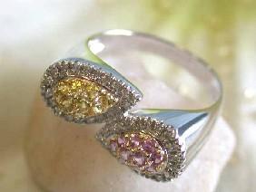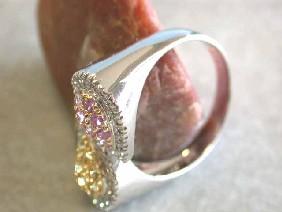 14k White Gold Ring with Diamonds - 0.18 carat, G color and VS clarity'; Yellow Topaz - 0.26 carat and Pink Topaz - 0.23 carat. The ring size 7.25 Weight - 4.3 grams