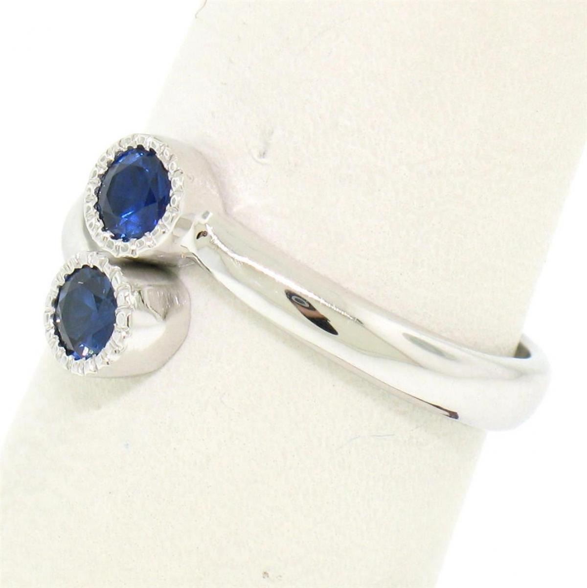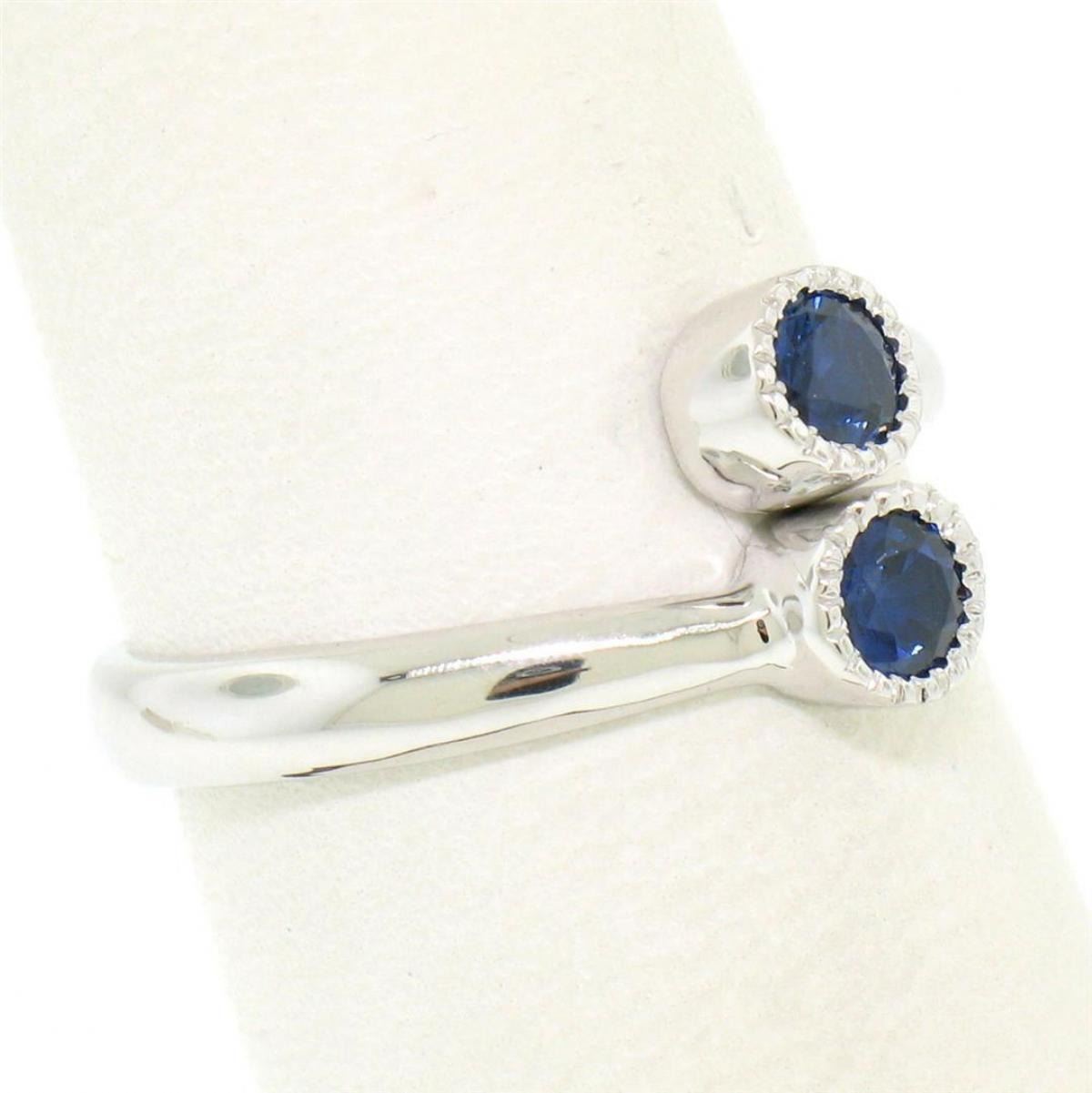 One NEW Custom 14k White Gold Round Bezel Set Sapphire Two Stone Simple Bypass Ring. Item Details: Material:  14k Solid White Gold, Weight:  2.6 Grams, Stone(s):  (2) Natural Genuine Sapphires - Round Cut - Bezel Set - Vibrant Royal Blue Color - 0.41ctw, Total Carat Weight:  0.41, Ring Size:  6 (We can custom size this ring.), Ring Width:  9.13mm, Ring Height:  3.07mm rise off the finger, Condition:  New w/o Tag
