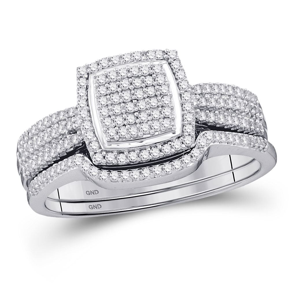 14k White Gold Round Diamond Square-shape Cluster Stud Screwback Earrings 1/2 Cttw