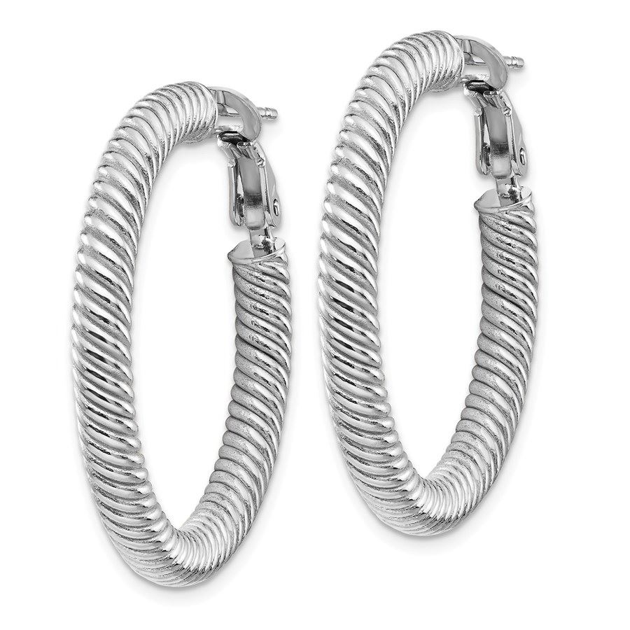 14k White Gold Twisted Round Omega Back Hoop Earrings - 25 mm