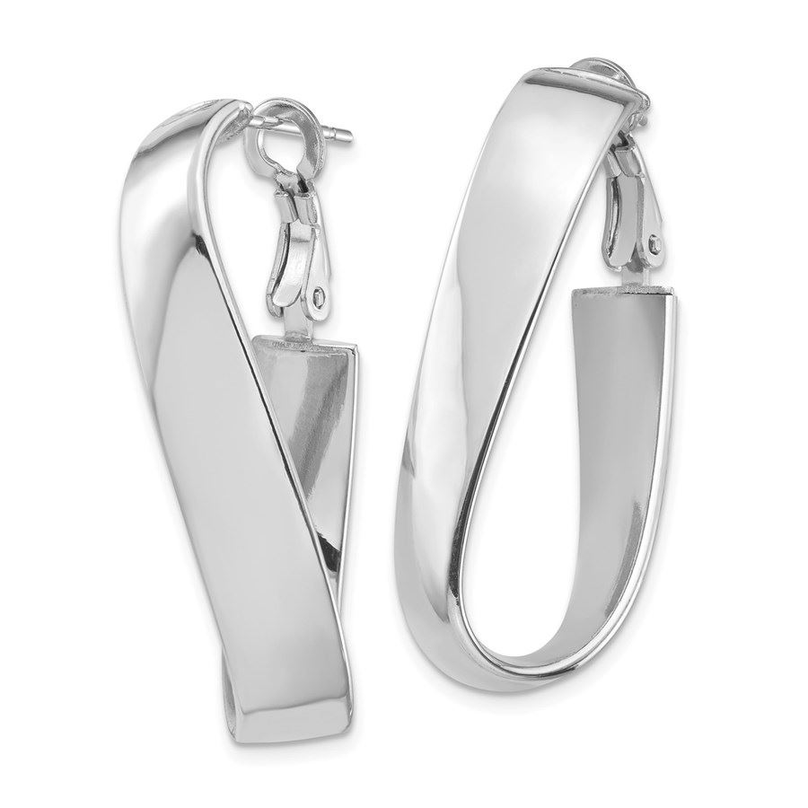 14k White Gold Wavy Omega Back Oval Hoop Earrings - 7 mm
