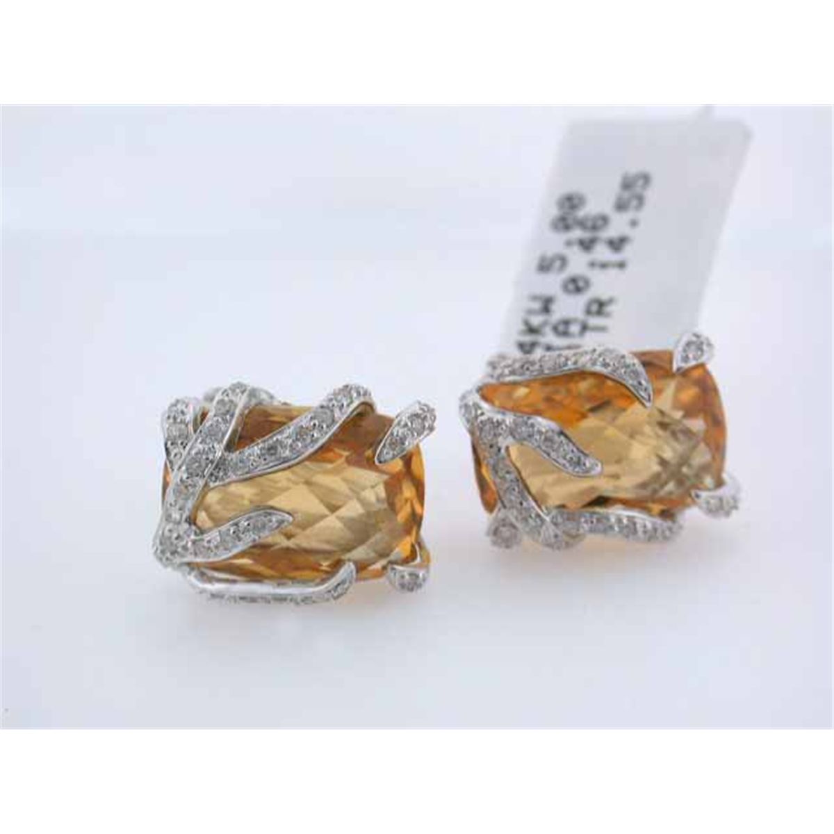 14k White Gold Earrings with Diamonds - 0.46 carat and Citrine - 14.55 carats, approximately 14.5 mm x 10 mm and weight - 5.0 grams