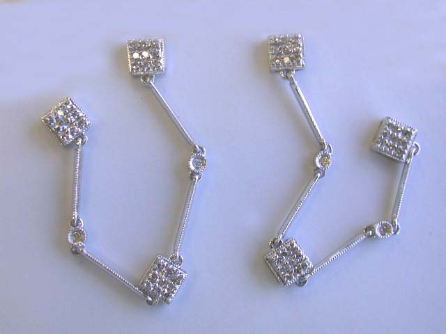 14k White Gold Dangling Earrings with Diamonds. The Diamonds are 0.35 carats, G color and VS clarity. The earrings' Length - approximately 2.5 inches long and Weight - 3.30 grams.