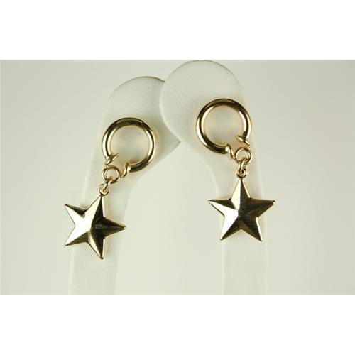 14K Yellow Gold Earrings with a Star shaped Dangle. They measure 1 inch in length and they have post style backs for pierced ears.