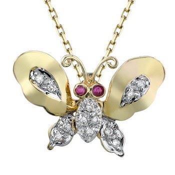 One 14k Yellow Gold 0.10CTW Diamond and Ruby Pendant, (SI2-SI3/G-H) - Product Specification: Stone: Diamond Stone 2 Custom: 2 Stone 2 Shape: Round Stone 2 Type: Ruby Stone 3 Custom: Women Stone 4 Custom: SI2-SI3 / G-H Stone Clarity: SI2-SI3 Stone Color: G-H Stone Color to: H Stone Count: 9 Stone type: Round Stone Weight: 0.1 Weight: 1