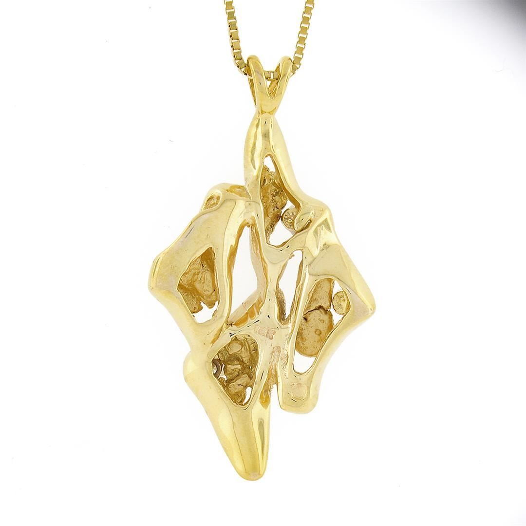 14k Yellow Gold 0.25 ctw Diamond Freeform Nugget Pendant w/ 18" Box Chain Neckla