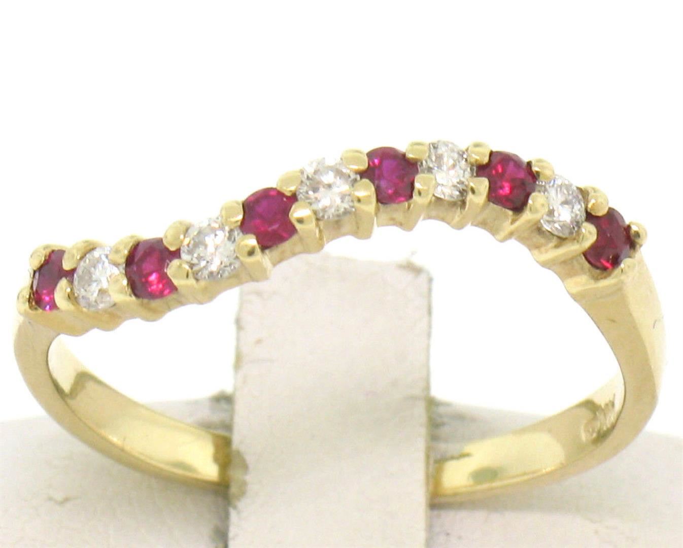 14k Yellow Gold 0.41 ctw Prong FINE Round Ruby & Diamond Wavy Wave Band Ring