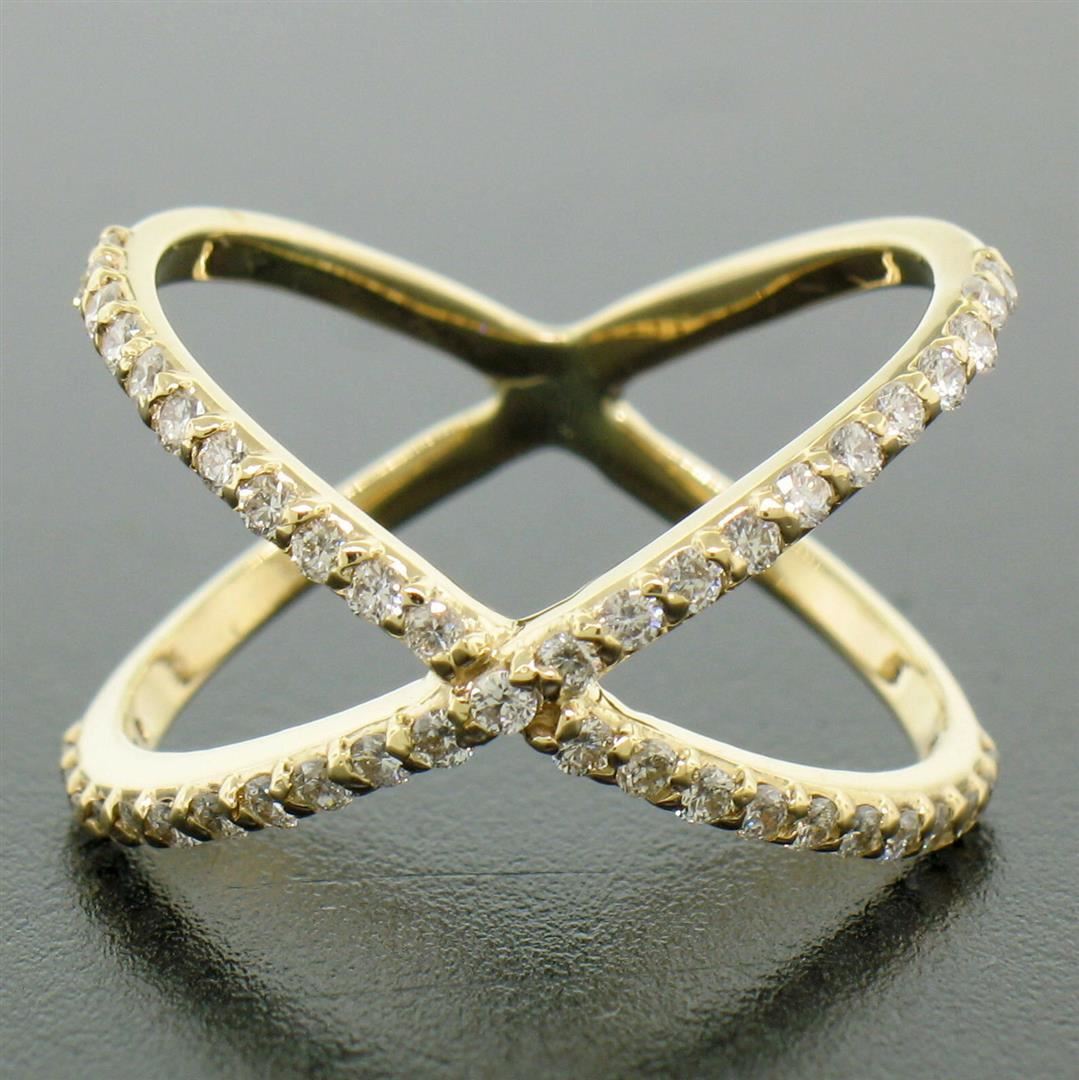 One NEW 14k Yellow Gold 0.50ctw 45 Round Brilliant Diamond Simple X Ex Cross Band Ring. Item Details: Material: 14k Solid Yellow Gold, Weight: 2.9 Grams, Stone(s): (45) Natural Genuine Diamonds - Round Brilliant Cut - Prong Set - G Color - VS2 Clarity, Total Carat Weight: 0.50, Ring Size: 6.25 (We can custom size this ring.), Ring Width: 13.13mm, Ring Height: 2.31mm rise off the finger, Condition: New w/o Tag