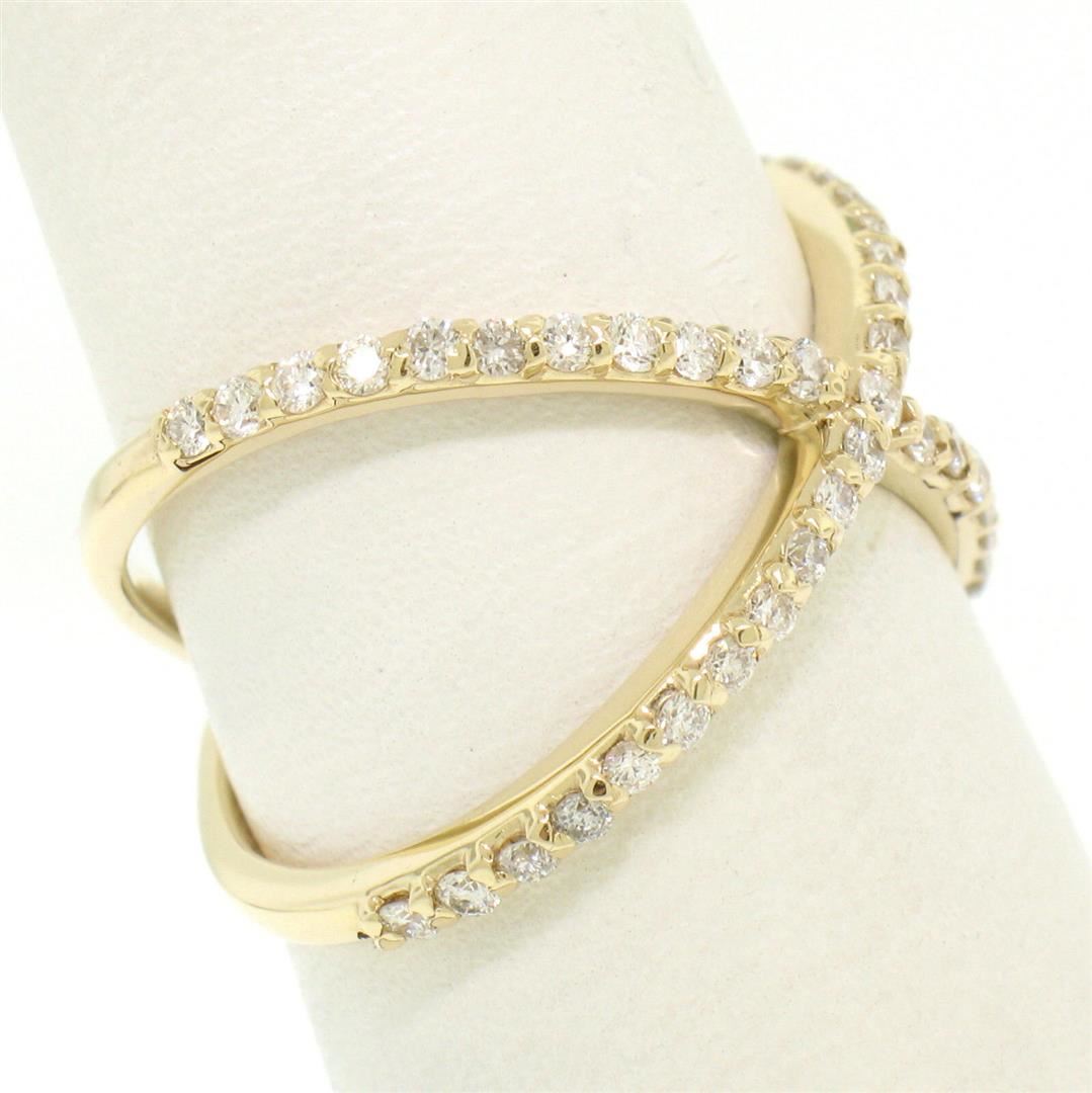 One NEW 14k Yellow Gold 0.50ctw 45 Round Brilliant Diamond Simple X Ex Cross Band Ring. Item Details: Material: 14k Solid Yellow Gold, Weight: 2.9 Grams, Stone(s): (45) Natural Genuine Diamonds - Round Brilliant Cut - Prong Set - G Color - VS2 Clarity, Total Carat Weight: 0.50, Ring Size: 6.25 (We can custom size this ring.), Ring Width: 13.13mm, Ring Height: 2.31mm rise off the finger, Condition: New w/o Tag