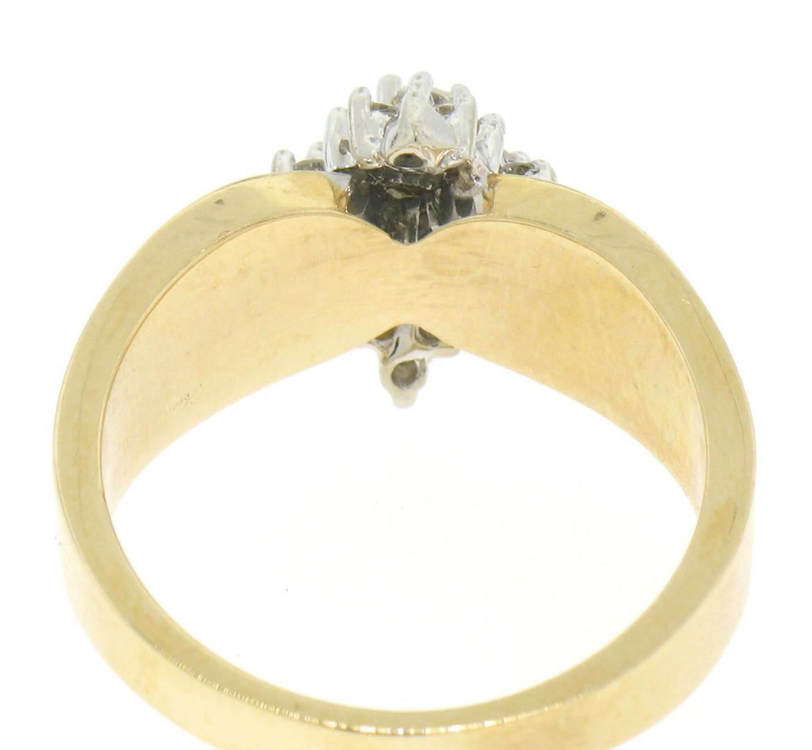 14k Yellow Gold 0.50ctw Terraced Round Brilliant Diamond Cluster Cocktail Ring. A solid 14k yellow gold ring featuring 21 round brilliant cut natural diamonds (G/H - VS2/SI1) prong set in a tiered diamond shape. The ring is size 6.25, weighs a total of 5.