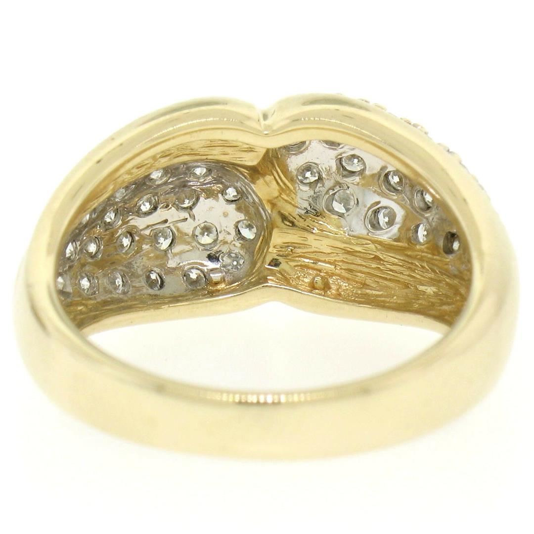 One 14k Yellow Gold 0.75ctw Pavé Round E VS Diamond Cluster Puffed Band Bypass Ring. Item Details: Material: 14K Solid Yellow Gold, Weight: 5.30 Grams, Stone(s): (44) Natural Genuine Diamonds - Round Brilliant Cut - Pavé Set - E/F Color - VS1/VS2 Clarity, Total Carat Weight: 0.75ctw (approx.), Ring Size: 6.5 , Ring Width: 10.34mm, Ring Height: 4.63mm rise off the finger, Condition: Like New!
