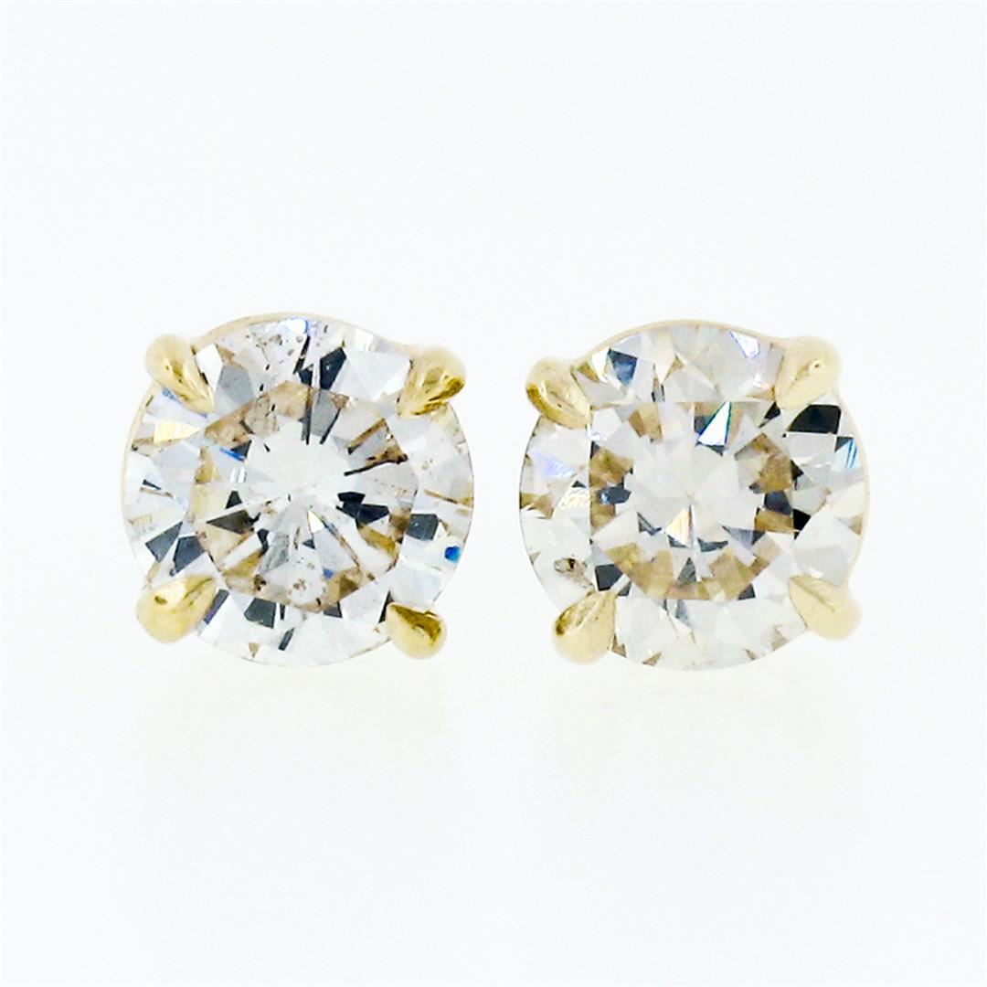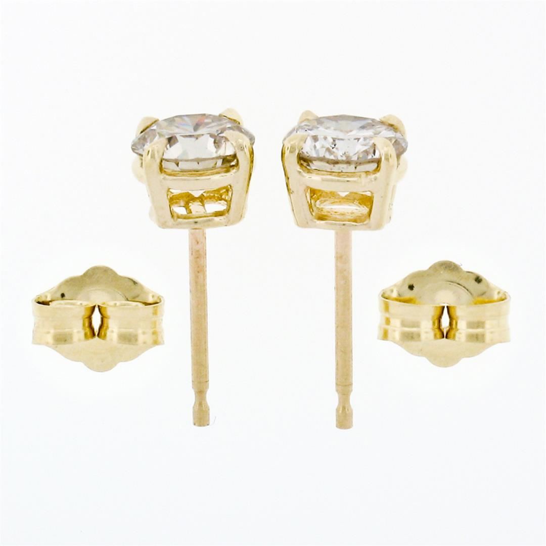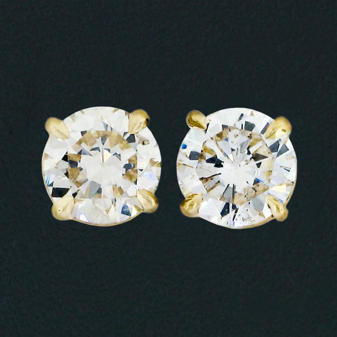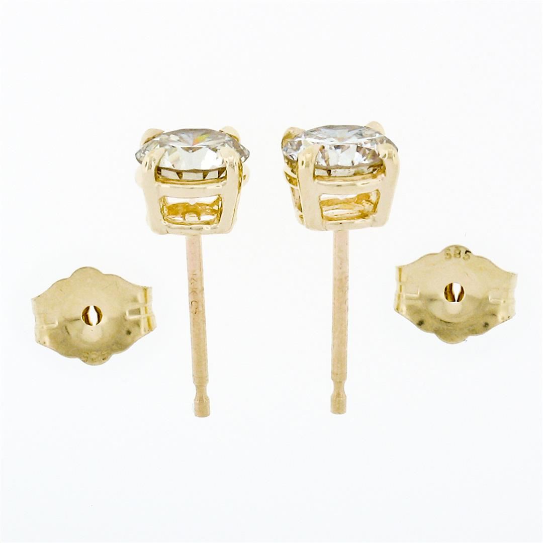 14k Yellow Gold 1.11ctw Round Brilliant Cut Diamond Claw Prong Stud Earrings. A brand new pair of classic solid 14k yellow gold stud earrings featuring a pair of claw prong set round brilliant cut natural diamonds (J - VS1/VS2; 1.11ctw). The earrings meas