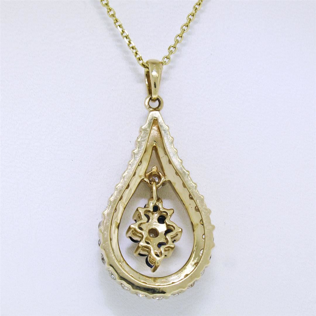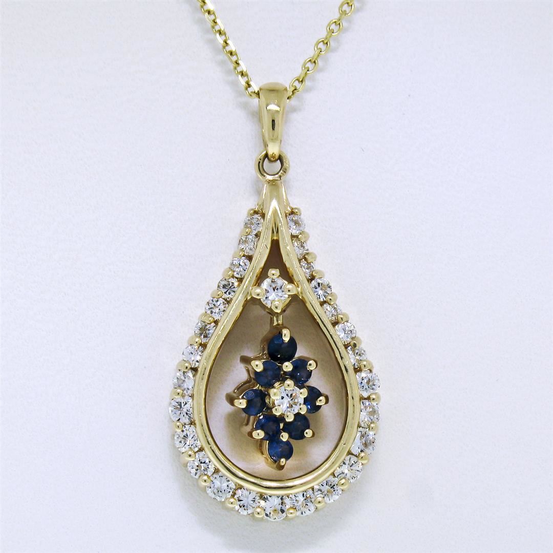 14k Yellow Gold 1.22 ctw Diamond and Sapphire Tear Drop Dangle Pendant Necklace