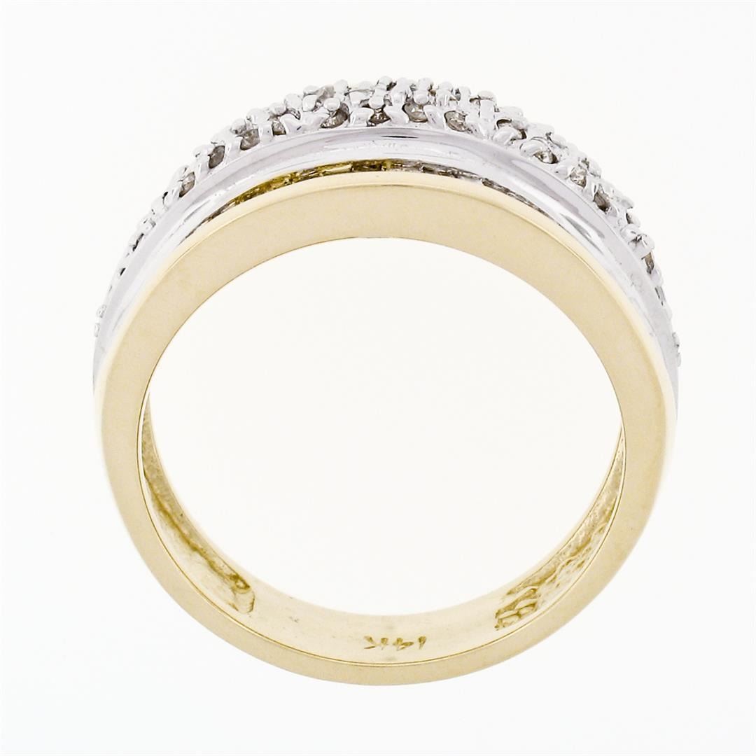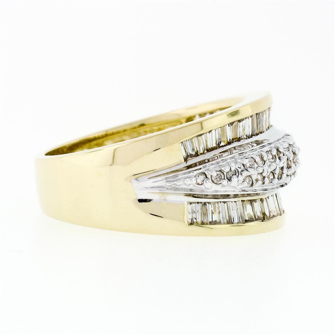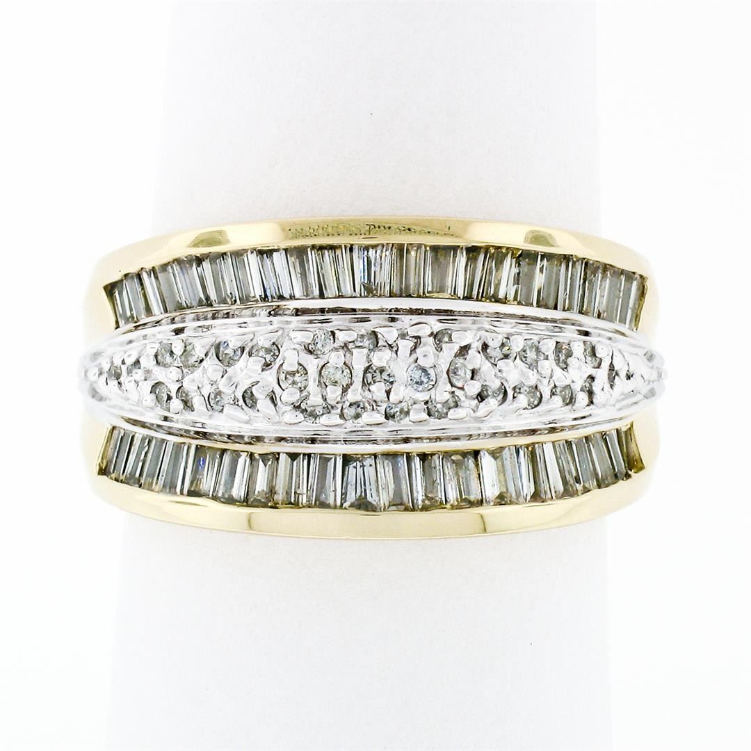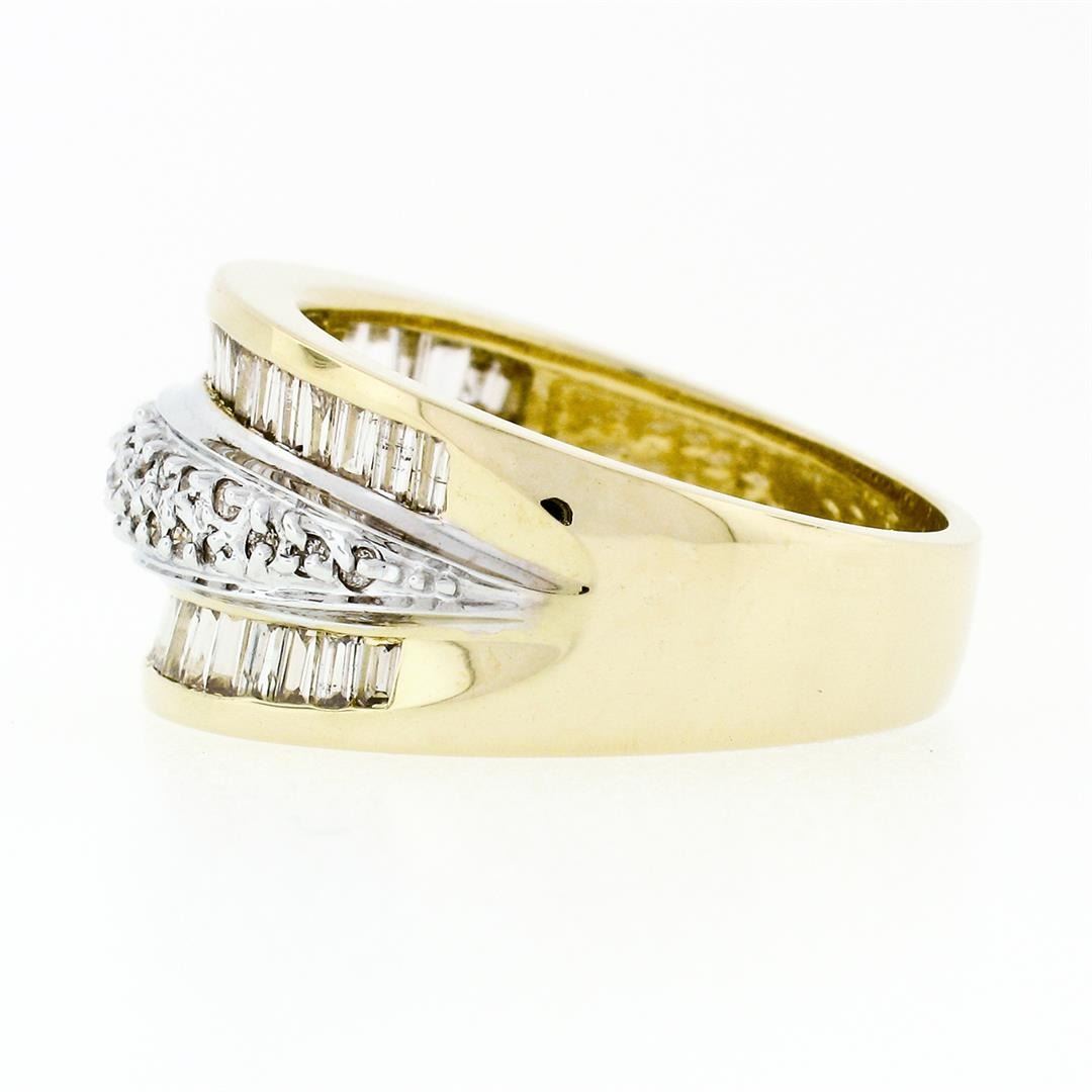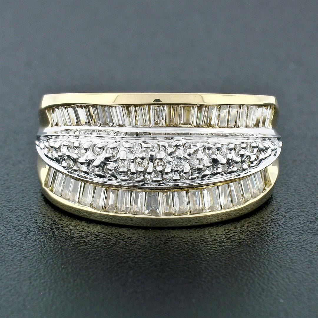 14k Yellow Gold 1.34 ctw 3 Row Channel Baguette Pave Round Diamond Wide Band Rin