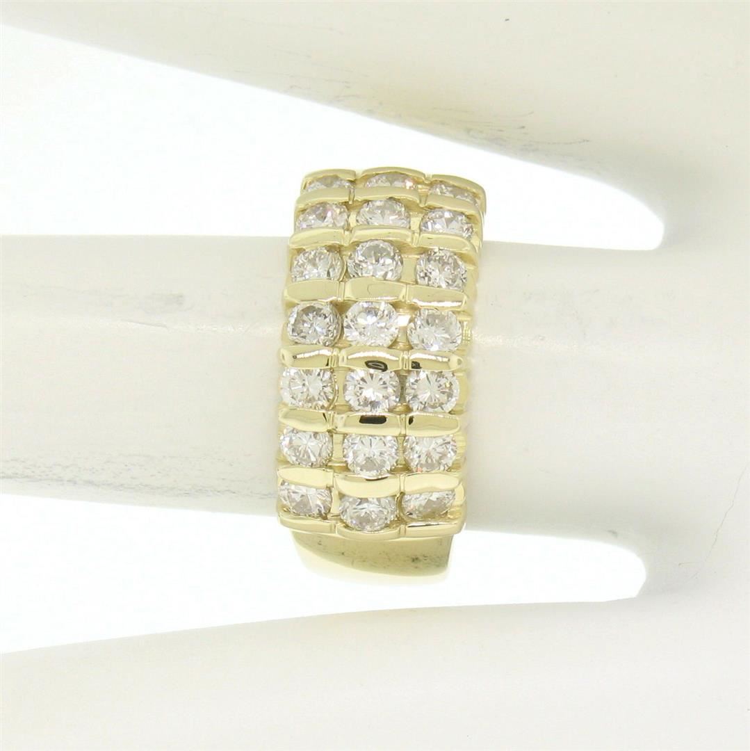 A 14k yellow gold wide band ring bar set with 1.48ctw of round brilliant diamonds (G/H - VS2) in 3 rows. The ring is size 6.0, weighs a total of 6.70 grams, and measures 9.1mm wide.