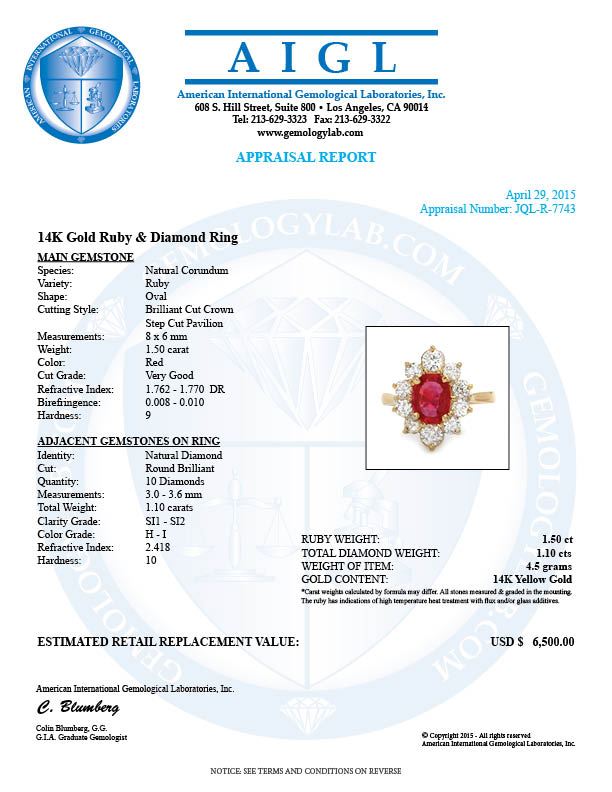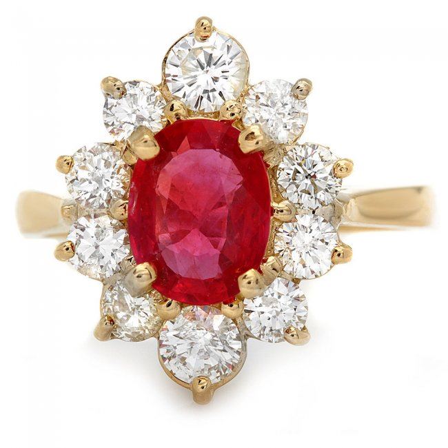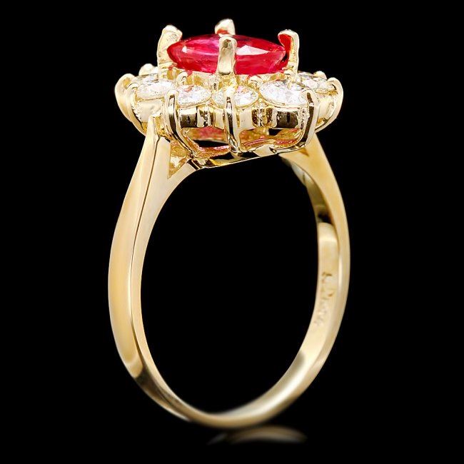 Retail: $6,400.00 ****** 14k Yellow Gold 1.50ct Ruby 1.10ct Diamond Ring ****** Metal: 14k Solid Yellow Gold / Size: 6.5 / Total Item Weight: 4.5 grams / Country Made: United States / / Main Stone: Ruby / Color: Pink / Carat Total Weight: 1.50 / Treatment: Filling / Clarity: Type 2 / Cut: Very Good / / Secondary Stone: Diamond / Carat Total Weight: 1.10 / Treatment: None / Color Grade: H - I / Clarity: SI1 - SI2 / Cut: Very Good /