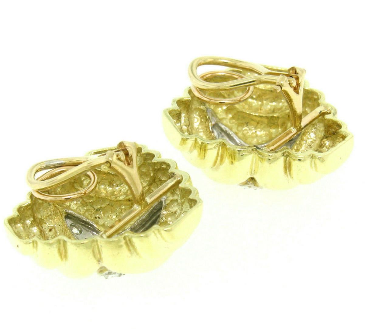 Like new 14k yellow gold triangular clip-on earrings with 1.80ctw of round diamonds (F - VS1). The earrings measure approximately 24.91x23.95mm and weigh a total of 25.60 grams.