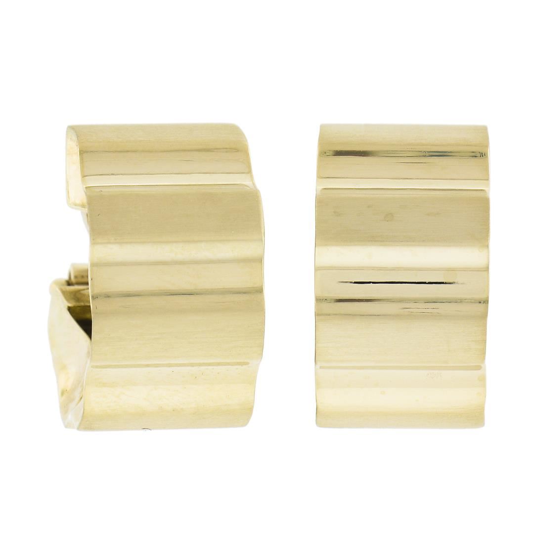 A solid 14k yellow gold cuff earrings. The earrings measure approximately 20.3x11.3mm and weigh a total of 7.81 grams.