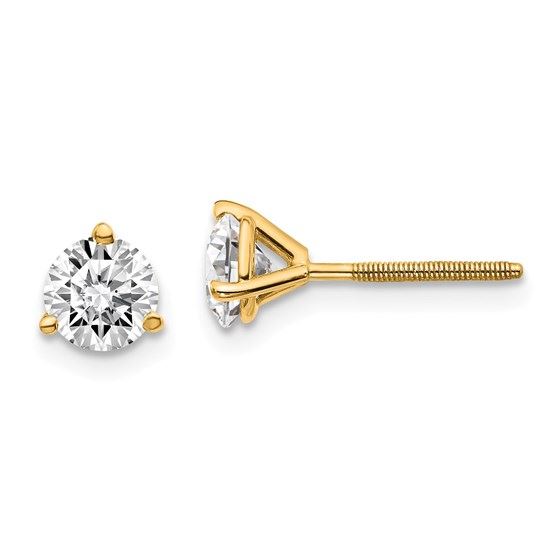 One piece 14k Yellow Gold 1ct Lab Grown Diamond 3-Prong Earring