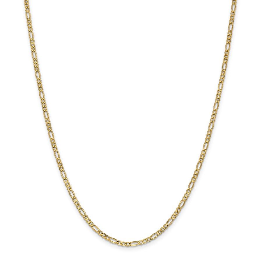 14k Yellow Gold 2.5 mm Semi-Solid Figaro Chain - 28 in.