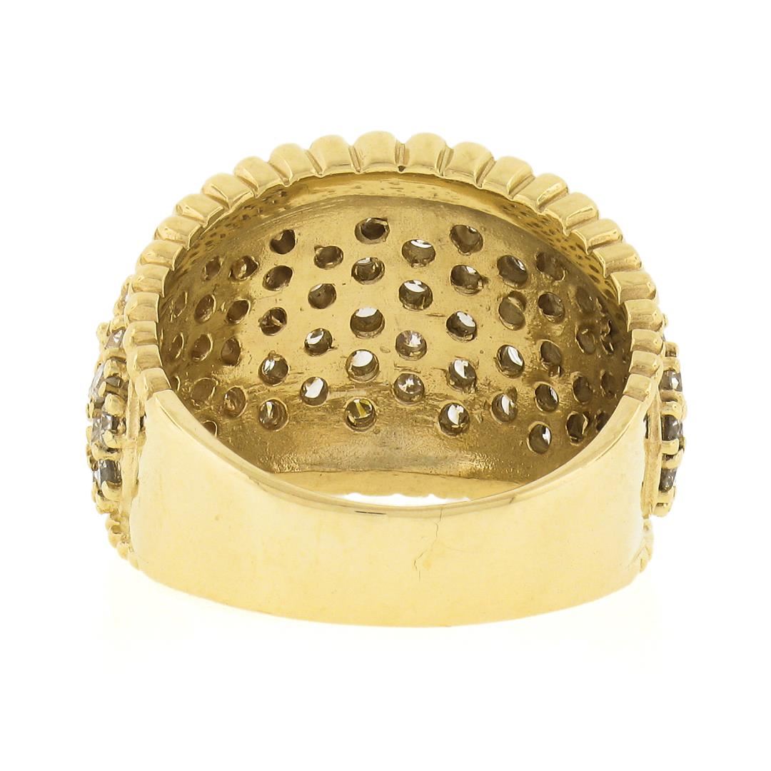A solid 14k yellow gold cigar band ring, with 77 round cut natural diamonds (H/I - VS2-SI1; 2ctw). The ring is size 5.5, weighs a total of 8.15 grams, and measures 14.2mm wide.