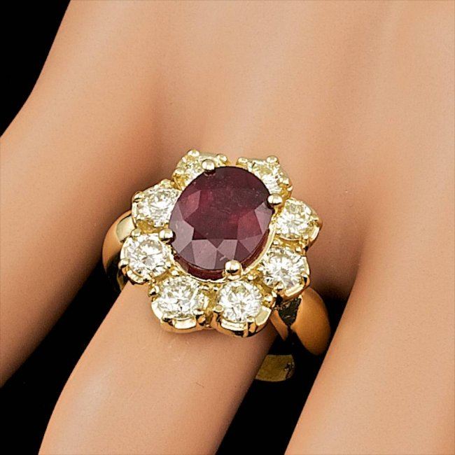 Retail: $12,300.00 ****** 14k Yellow Gold 3.00ct Ruby 1.50ct Diamond Ring ****** Metal: 14k Solid Yellow Gold / Size: 6.5 / Total Item Weight: 8.3 grams / Country Made: United States / / Main Stone: Ruby / Color: Red / Carat Total Weight: 3.00 / Treatment: Filling / Clarity: Type 2 / Cut: Very Good / / Secondary Stone: Diamond / Carat Total Weight: 1.50 / Treatment: None / Color Grade: G - H / Clarity: SI1 - SI2 / Cut: Very Good /