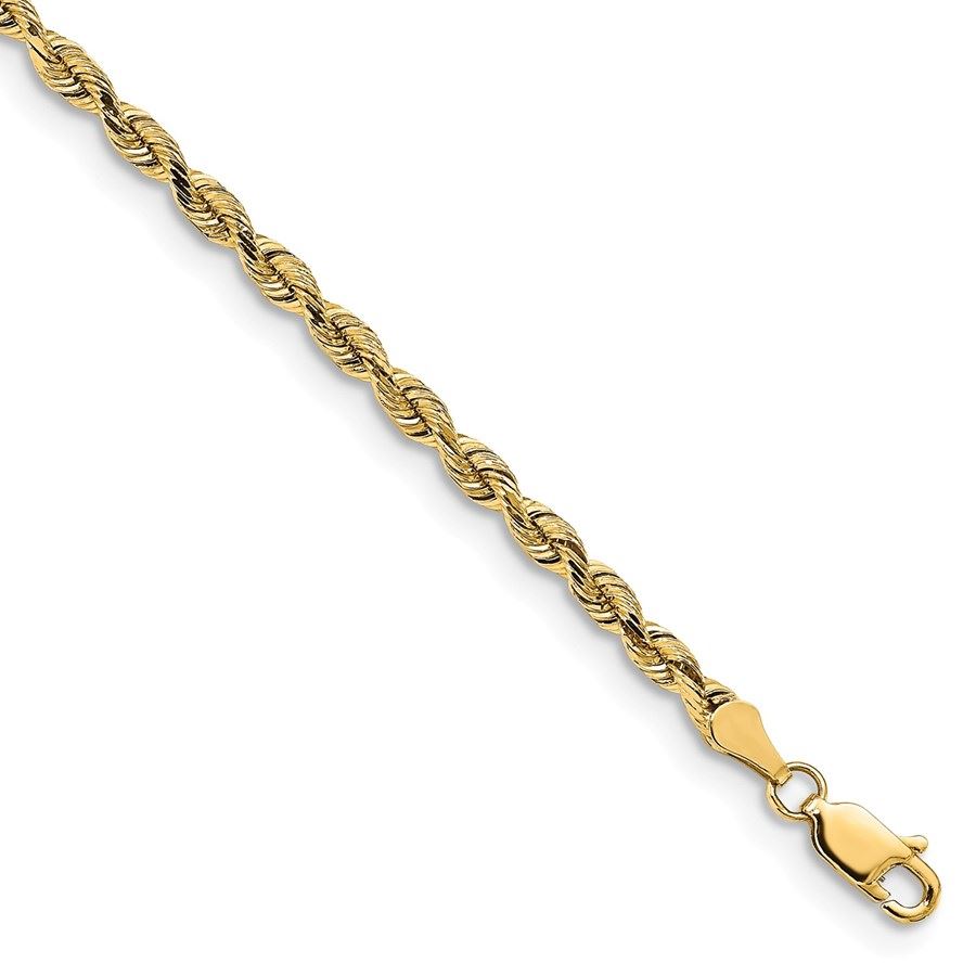 14k Yellow Gold 3 mm Diamond Cut Silky Rope Chain - 7 in.