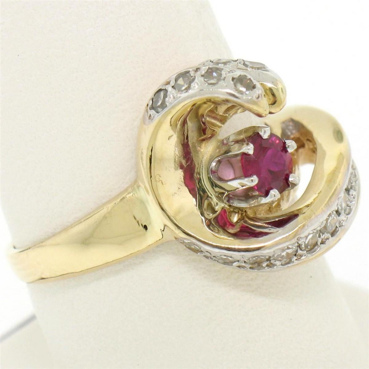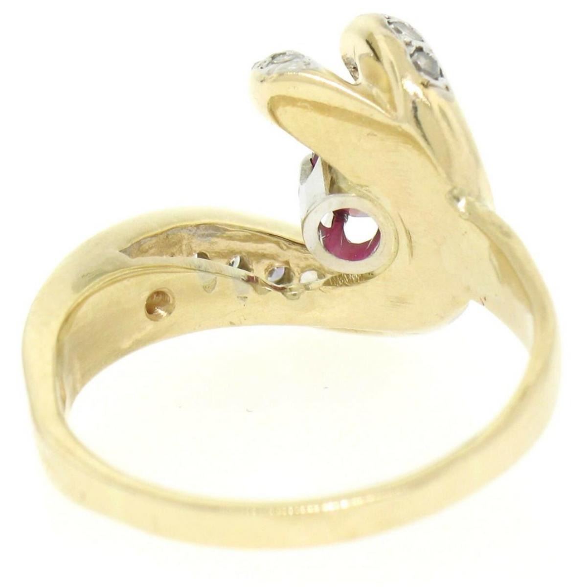 14k Yellow Gold .30 ctw Round Blood Red Ruby Claw Cocktail Ring w/ Diamond Accen