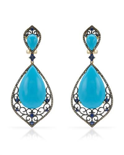 One 14k Yellow Gold 32.83CTW Turquoise and Sapphire and Brown Diamonds Earring - Product Specification: Stone: Turquoise Stone 2: Sapphire Stone 2 Weight: 0.74 Stone 3: Brown Diamonds Stone 3 Custom: Women Stone 3 Weight: 1.18 Stone Weight: 30.91 Weight: 1 Width: 10.0mm