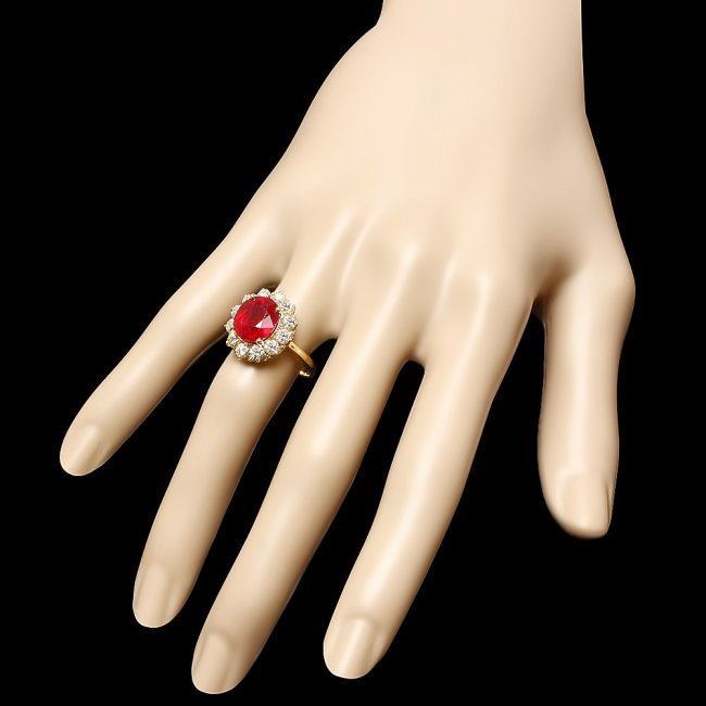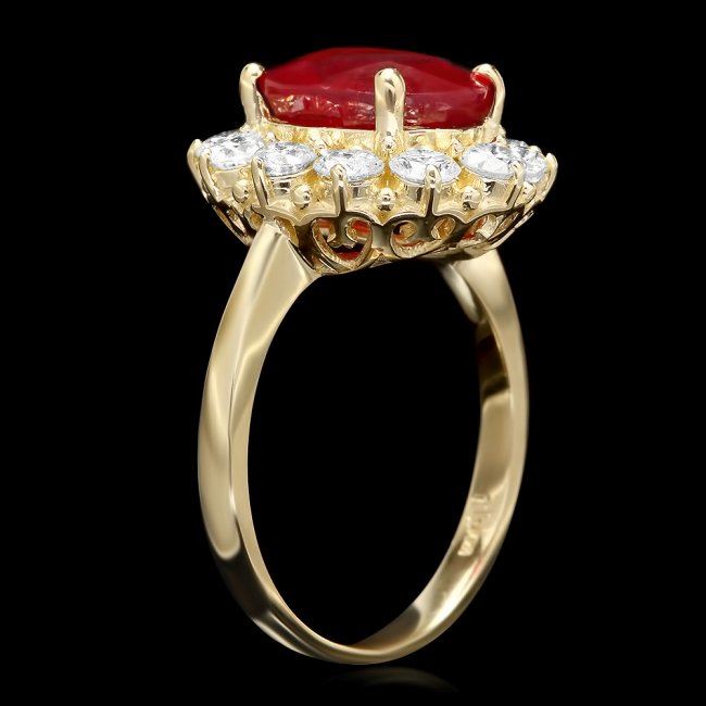 Retail: $6,900.00 ****** 14k Yellow Gold 5.00ct Ruby 1.35ct Diamond Ring ****** Metal: 14k Solid Yellow Gold / Size: 7.5 / Total Item Weight: 5.0 grams / Country Made: United States / / Main Stone: Ruby / Color: Red / Carat Total Weight: 5.00 / Treatment: Filling / Clarity: Type 2 / Cut: Very Good / / Secondary Stone: Diamond / Carat Total Weight: 1.35 / Treatment: None / Color Grade: H - I / Clarity: SI1 - SI2 / Cut: Very Good /