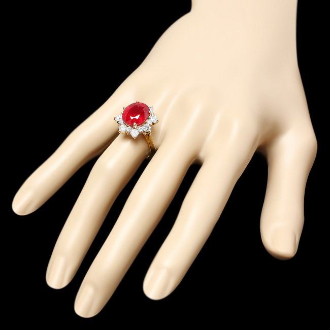 Retail: $9,700.00 ****** 14k Yellow Gold 6.63ct Ruby 1.45ct Diamond Ring ****** Metal: 14k Solid Yellow Gold / Size: 6.75 / Total Item Weight: 6 grams / Country Made: United States / / Main Stone: Ruby / Color: Red / Carat Total Weight: 6.63 / Treatment: Filling / Clarity: Type 2 / Cut: Very Good / / Secondary Stone: Diamond / Carat Total Weight: 1.45 / Treatment: None / Color Grade: H - I / Clarity: SI1 - SI2 / Cut: Very Good /