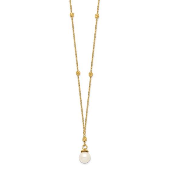 One piece 14k Yellow Gold Beaded Chain w/5 mm FW Pearl Necklace - 18 in.
