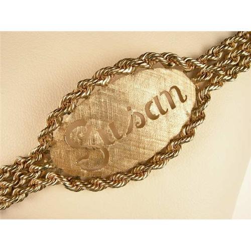 This 14k Yellow Gold Bracelet is Circa 1990 and it features the name 'SUSAN' beautifully carved out. This bracelet has Solid Gold triple rope sides that are 3/8" wide. The bracelet is 7 inches in length and it has a very sturdy clasp.