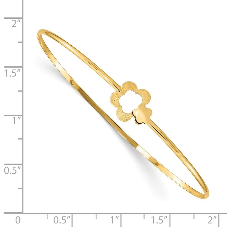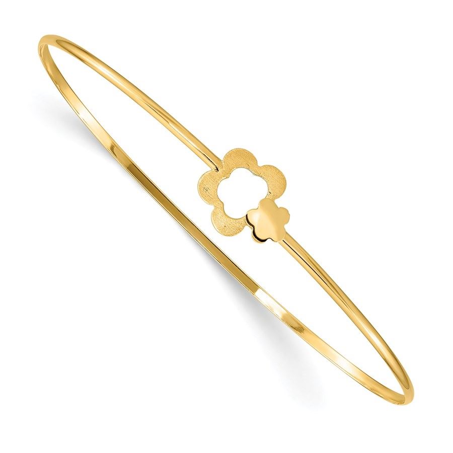 14k Yellow Gold Brushed & Polished Flowers Slip On Bangle