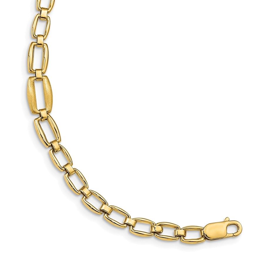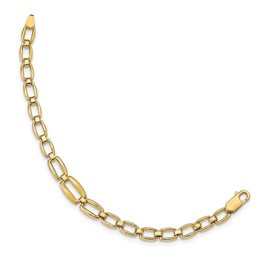 14k Yellow Gold Brushed & Polished Link Bracelet - 7 in.
