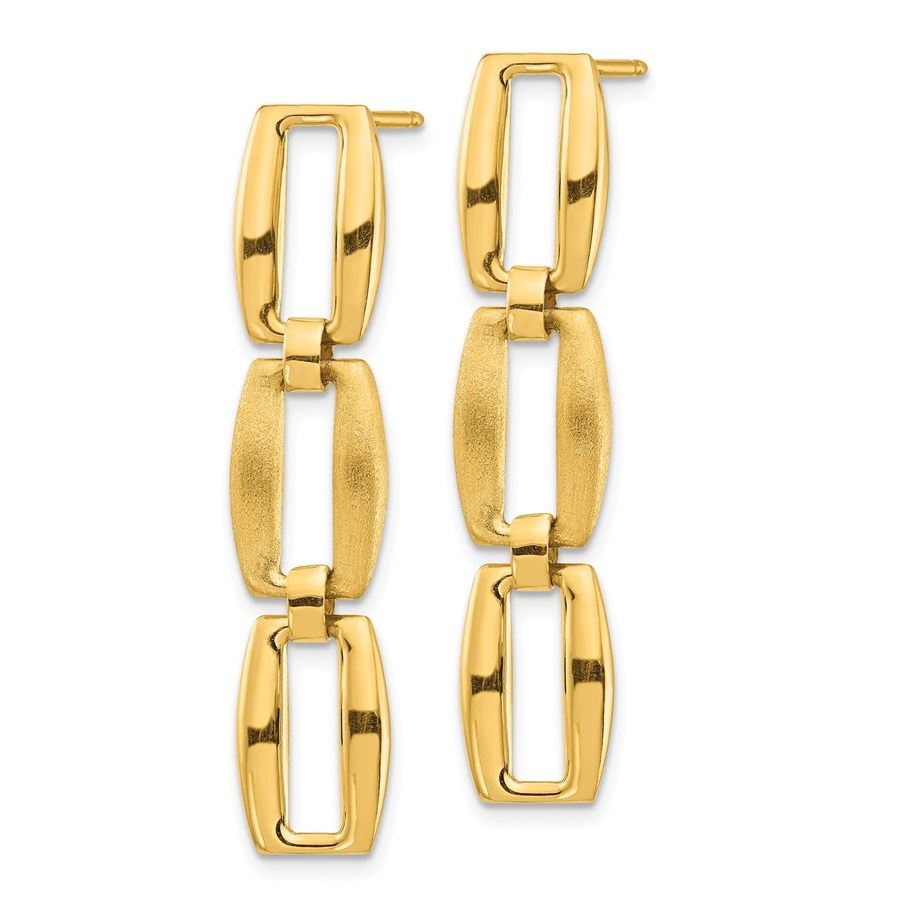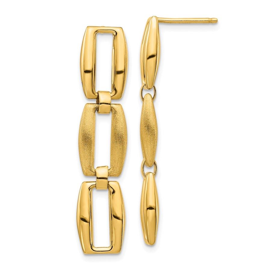 14k Yellow Gold Brushed & Polished Post Dangle Earrings