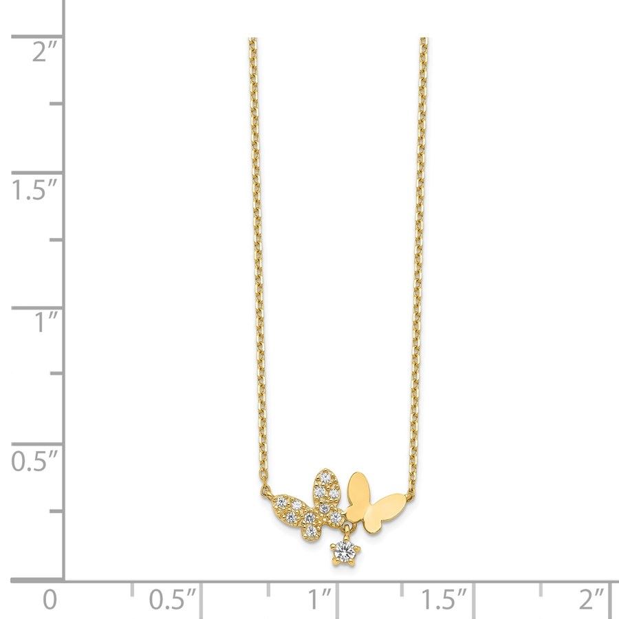 14k Yellow Gold Butterflies CZ with 2 in ext Necklace - 20 in.