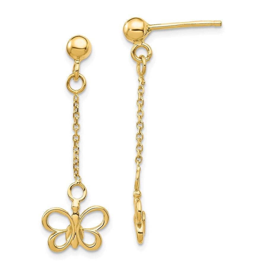 14k Yellow Gold Butterfly Dangle Post Earrings